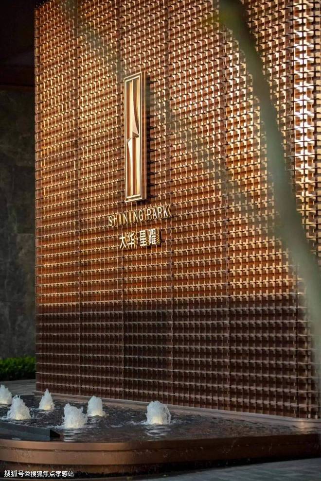大华星曜营销电话:☎☎✅✅地上大堂,单元门厅的雨棚采用香槟金的弧面铝板、立面干挂爱马仕灰蜂窝岩板,岩板上嵌入专属楼栋号,单元门两侧的弧线段金属采用定制模具加工。