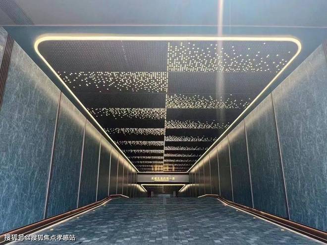 大华星曜营销电话:☎☎✅✅星空连廊的顶面采用香槟金铝板、墙面为爱马仕灰仿石砖,并镶嵌金属线条、就连地面都采用了夜里雪仿石砖。